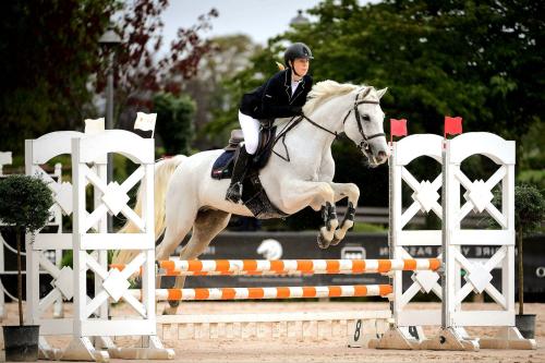 La giovane amazzone ritratta in sella al suo cavallo, ed impegnata a saltare un ostacolo, ha 22 anni, si chiama Ginevra Fanetti e vanta origini ferajesi nascendo dall'amico Luca.