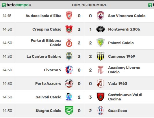 La Settimana scorsa l'Audace aveva battuto il Crespina 2-0: La Campese aveva partita vinta a "tavolino" 3-0 con lo Stagno; Porto Azzurro "a picco" a Livorno dall'Academy con 4-1.