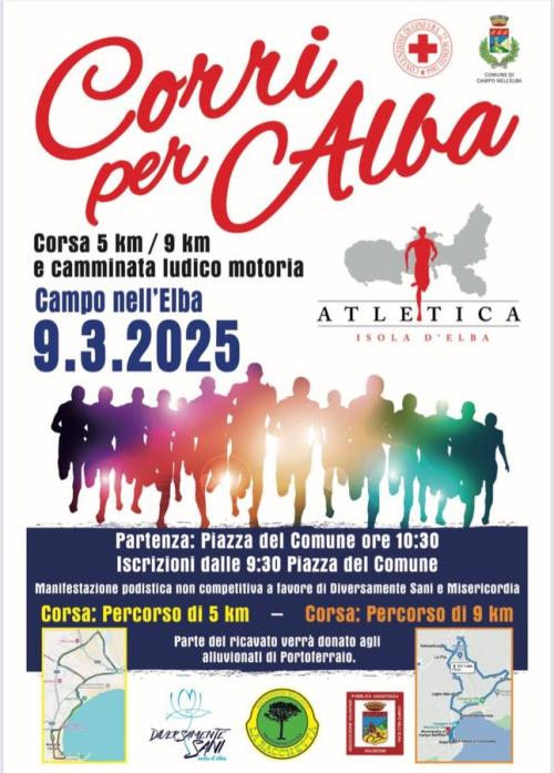 Domenica 9 marzo alle ore 1030 partirà l'edizione 2025 della Corri per Alba, attesa corsa cittadina che si svolgerà a Campo nell'Elba, in ricordo della podista Alba Giusti scomparsa alcuni anni fa: gli atleti si ritroveranno alla partenza in Piazza del Comune per le iscrizioni ma soprattutto per onorare la memoria di un'atleta e di un'amica.
