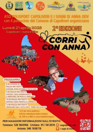 Lunedì 21 aprile ASD Polisport Capoliveri e I sogni di Anna ODV, con il patrocinio del Comune di Capoliveri, organizzano la II edizione Corri con Anna.