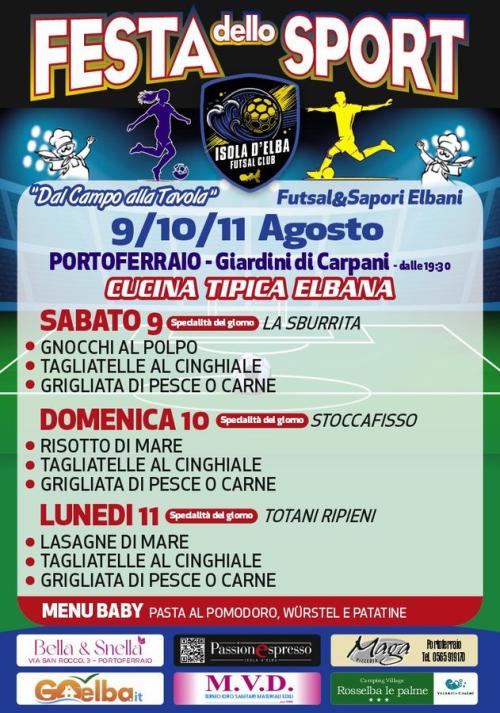 L’Isola d’Elba Futsal Club, si presenta ai nastri di partenza del calcio a 5 regionale con ben 6 squadre: i Pulcini “GoElba”, gli esordienti, l’under 15, l’under 17, l’ ”MVD” Isola d’Elba Femminile e il “Rosselba Le Palme” Futsal Club maschile. Dietro lo slogan “Dal campo alla tavola”, la dirigenza elbana ha voluto sottolineare il forte impatto isolano nella cultura regionale e nazionale di questo sport, almeno negli ultimi 25 anni, ricordiamo infatti le tre finali per il titolo di campione d’Italia della squadra femminile e la parentesi biennale in serie B della maschile sotto l’egida Elba ’97.