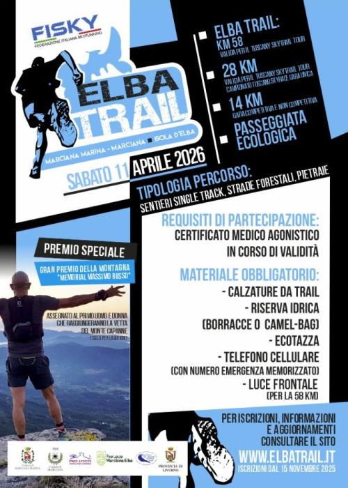 Elba Trail 2026 è in preparazione e l'Atletica Isola d'Elba è lieta di annunciare che le iscrizioni alla gara di trail running che si svolgerà a Marciana – Marciana Marina l'11 aprile 2026 si apriranno dal 15 Novembre.