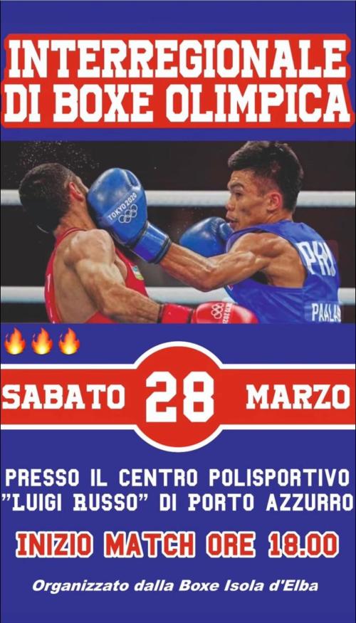 Oggi, sabato 28 marzo, presso il Centro Polisportivo “Luigi Russo” a Porto Azzurro, a partire dalle ore 18:00, si terranno le gare per l'Interregionale di boxe olimpica, un appuntamento sportivo organizzato dalla Boxe Isola d’Elba.